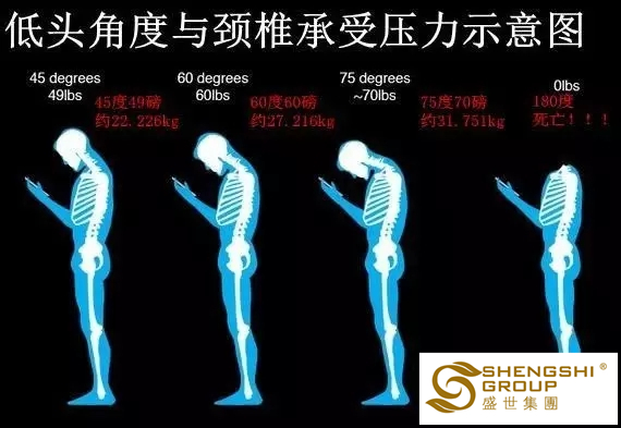 歐洲脊柱協(xié)會(huì)聲明中稱,一個(gè)人的頭部重約5kg,當(dāng)前傾看手機(jī)等電子設(shè)備時(shí),通常呈60°角,那么這時(shí)由于物理杠桿作用以及重力作用,一個(gè)人頸部肌肉就要承受25kg以上的重量。長(zhǎng)時(shí)間保持這一姿勢(shì),會(huì)出現(xiàn)頸部不舒服、疼痛、僵硬以及頭痛等癥狀長(zhǎng)期以往,這些癥狀則會(huì)加重,造成頸椎病等遠(yuǎn)期損害。