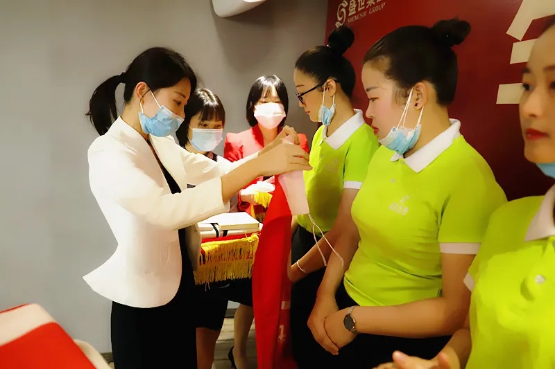 接下來,新成員光榮地登上舞臺,接受莊嚴的入職儀式!董事長的一封親筆信為現場新家人帶來溫情和感動,也帶來了士氣和使命。“讓天下人因為擁有健康和美麗而更加和諧幸福”,這不僅是董事長對盛世的信念,也是盛世家人們的祈愿和奮斗目標。