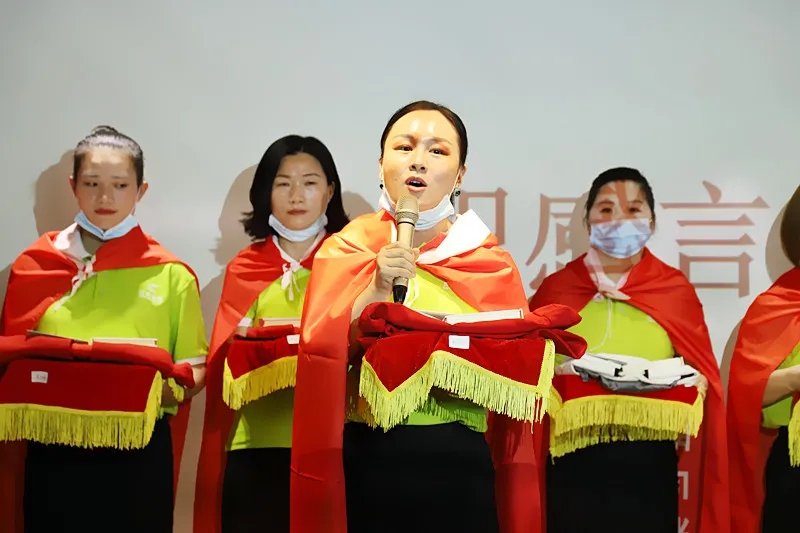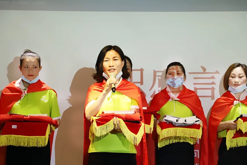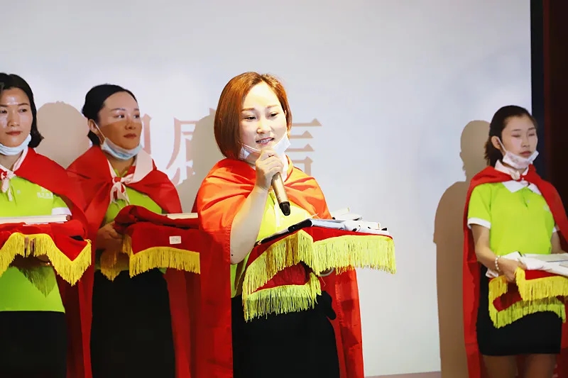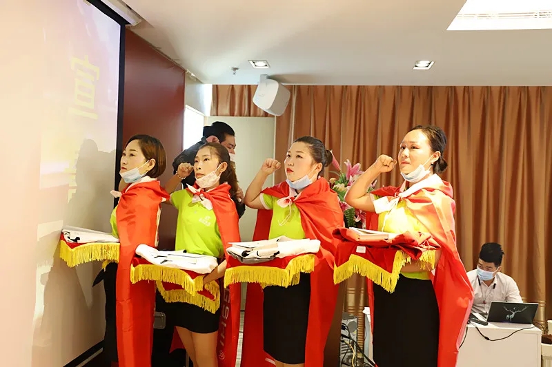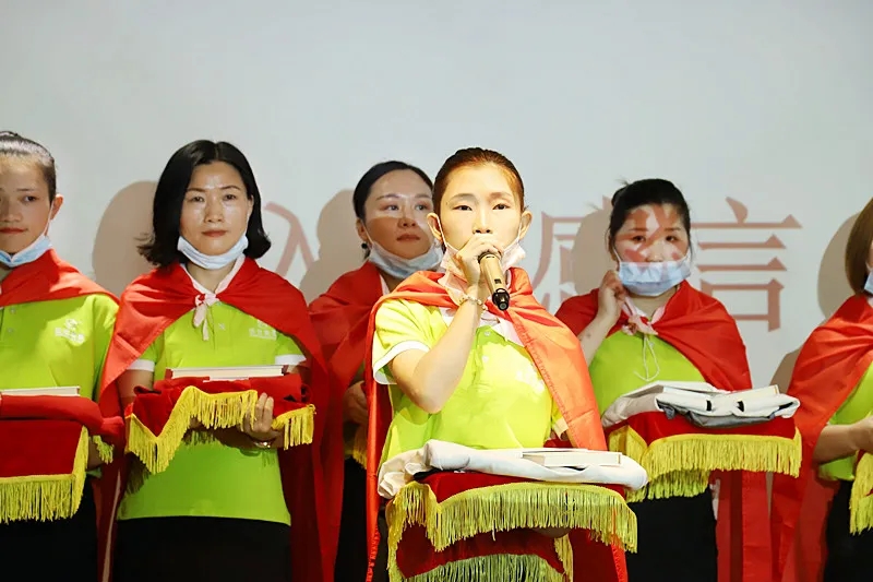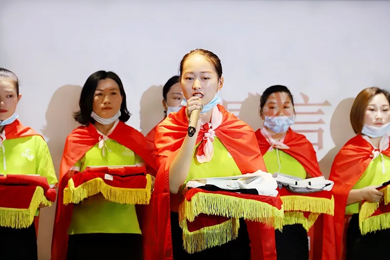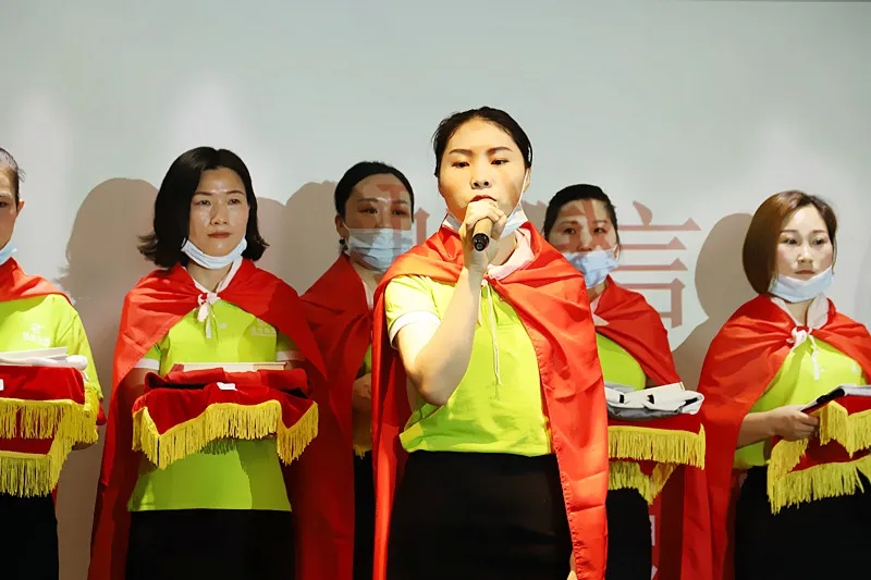 緊接著,臺上的新成員進行莊嚴的入職宣誓,身披戰袍猶如即將奔赴戰場的戰士,氣勢磅礴的發言讓現場所有家人為此熱血沸騰。此刻,我們將把職業當事業,把使命當生命,把信念當信仰,把企業文化融入骨髓為盛世未來奮斗終生!