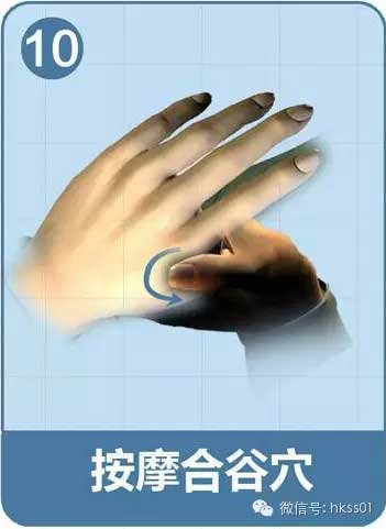 合谷穴在大拇指和食指中間的虎口處,把拇指 和食指分開,用另一手的大拇指經常按摩該處。