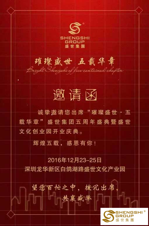 【璀璨盛世 五載華章】盛世五周年慶典,邀您見證! 2016-11-05