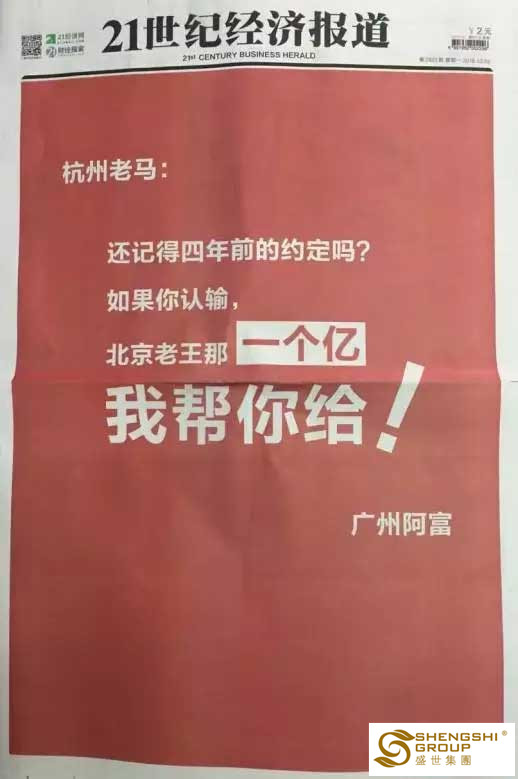 王健林也不是吃素的啊。頒獎現場就和馬云打下著名的1億賭局:如果2022年中國的電子商務占零售的份額不到50%,他將輸給王健林1個億,反之王健林將輸給馬云1個億。